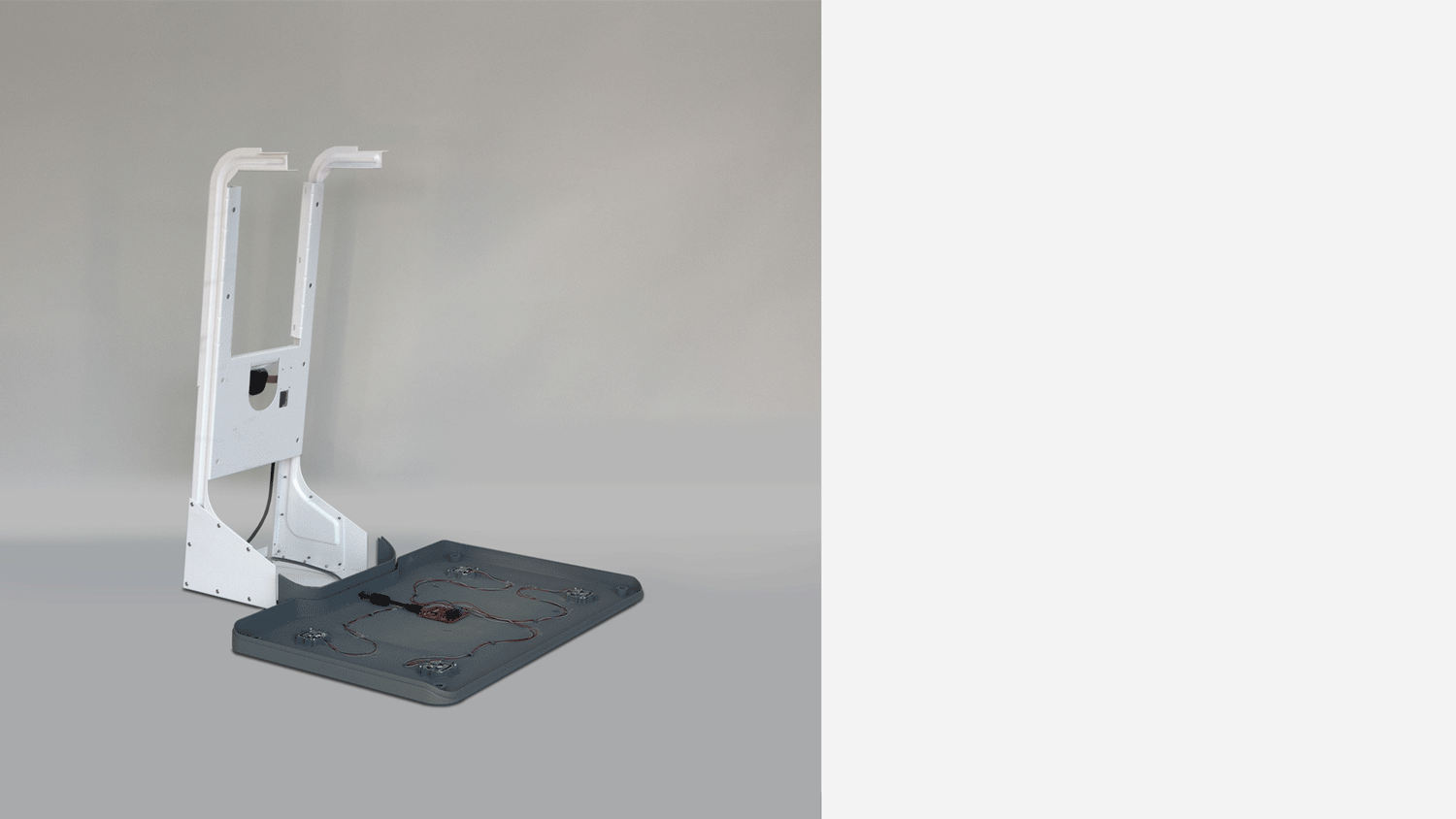 Support client on vision system positioning, camera module integrated custom mountings per Intel and vendors, updates for improved access for user interface, and all geometry controlled through a master model. One of the key challenges was managing the complex wiring required to connect multiple cables from the cameras and sensors through the plastic arms to a single point. StudioRed collaborated closely with the camera & sensor vendor to resolve this by introducing a customized camera module, which simplified the wiring architecture and streamlined routing. This solution not only improved reliability but also reduced assembly complexity.